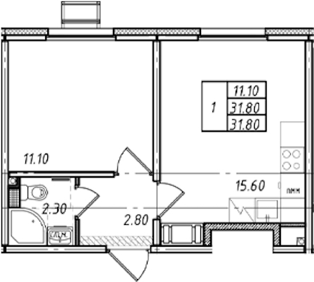 • Площадь31,8 м2