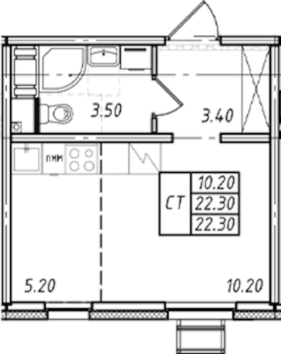 Квартира-студия на 3-ем этаже 22,3 кв.м