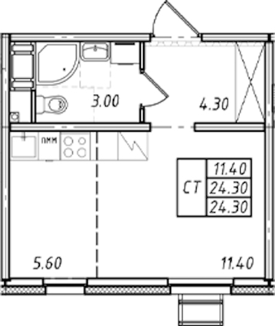 • Площадь24,3 м2
