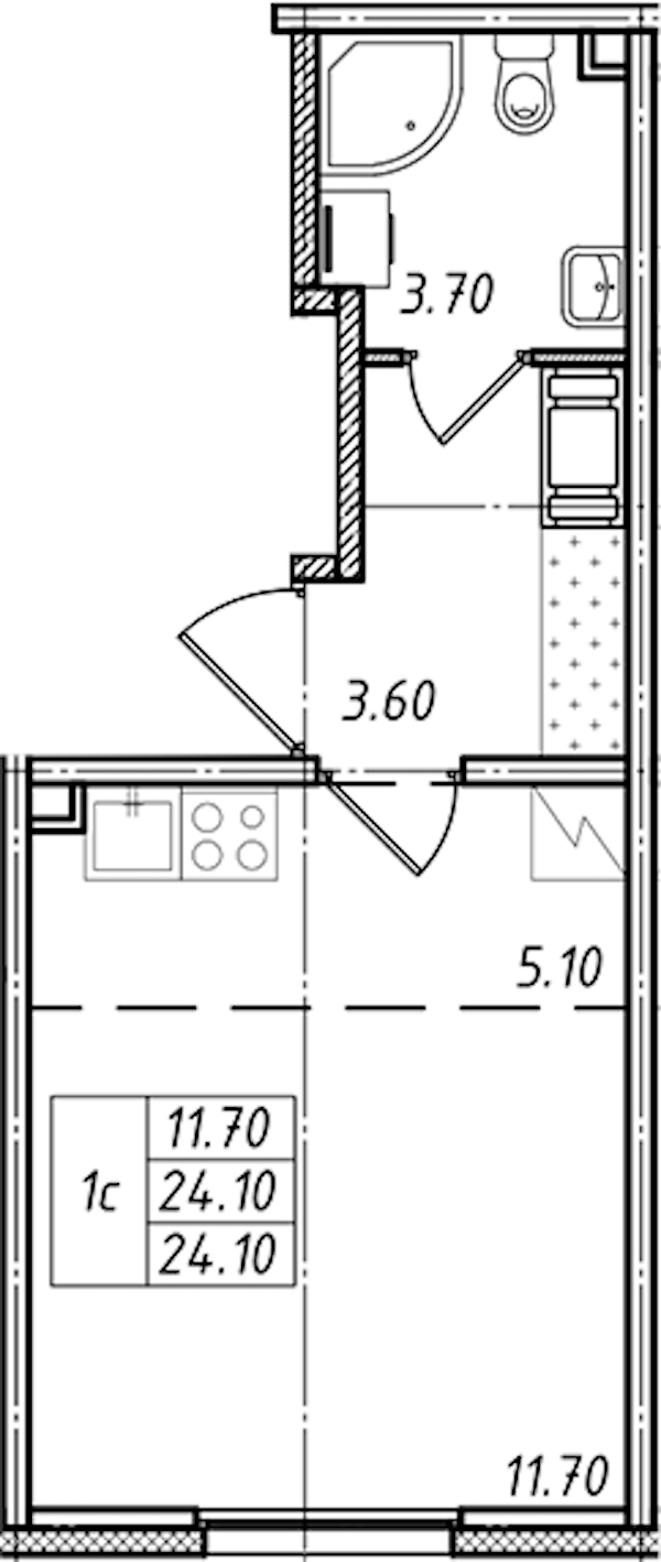 Квартира-студия на 5-ом этаже 24,1 кв.м