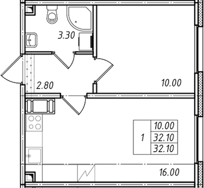 • Площадь32,1 м2