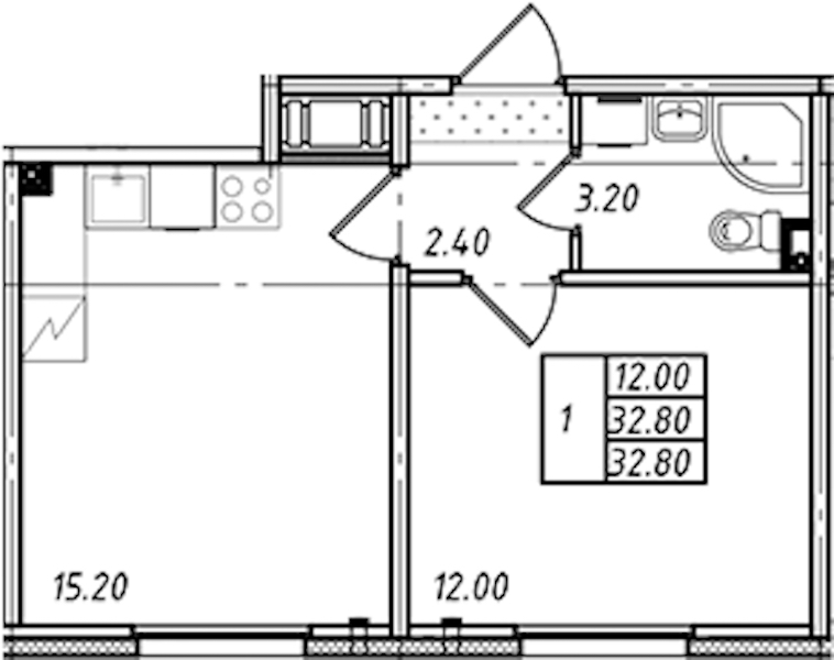 • Площадь32,8 м2
