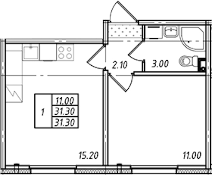 - Площадь31,3 м2