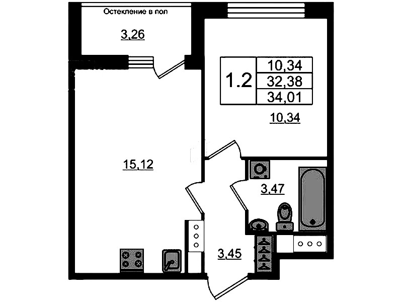 Однокомнатная квартира на 10-ом этаже 31,9 кв.м