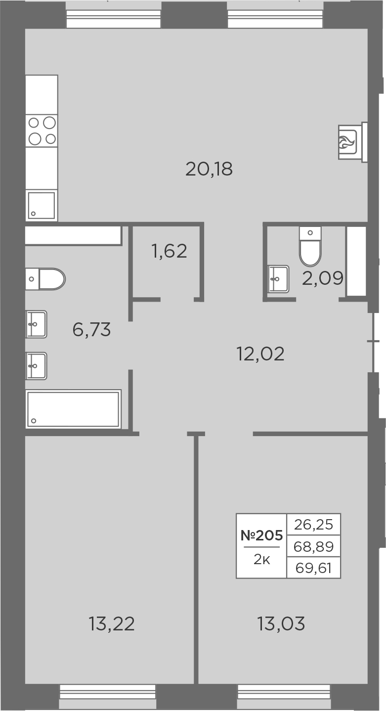 • Площадь69,61 м2