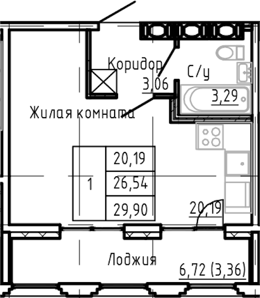 • Площадь29,9 м2