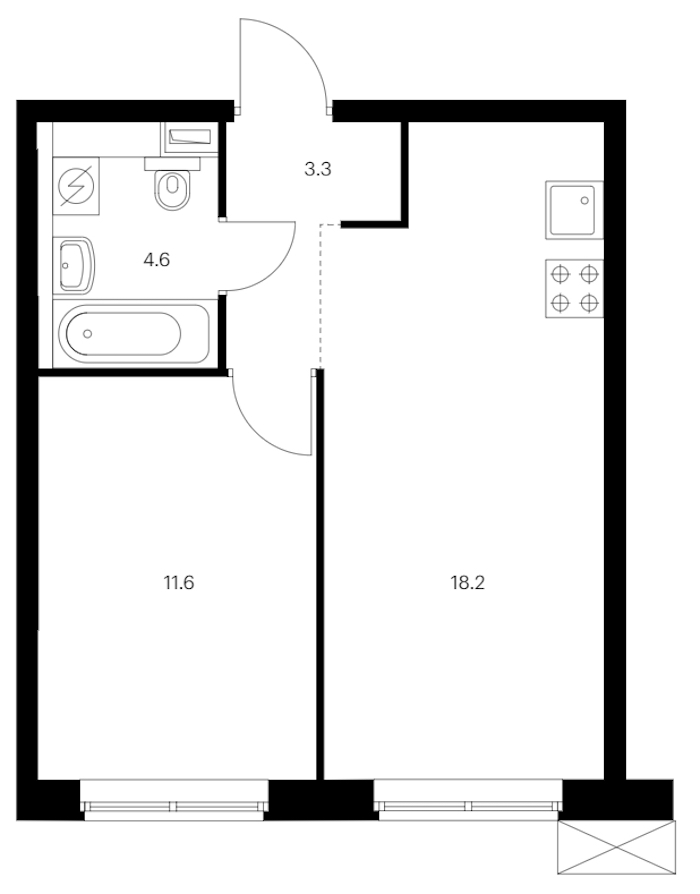 - Площадь кухни18,2 м2