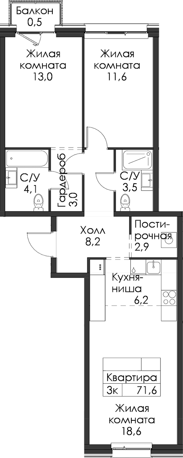 • Площадь71,6 м2