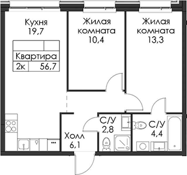 - Площадь56,7 м2