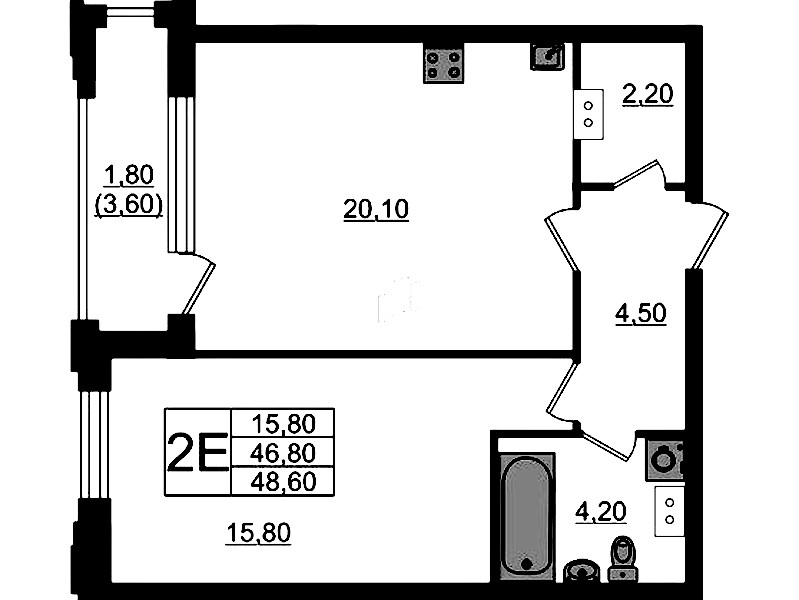 - Площадь48,6 м2