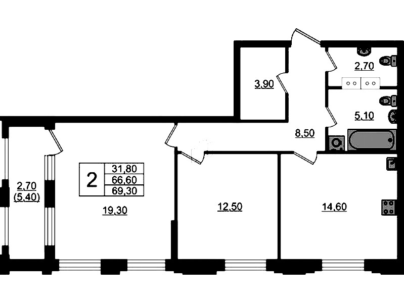 • Площадь69,3 м2