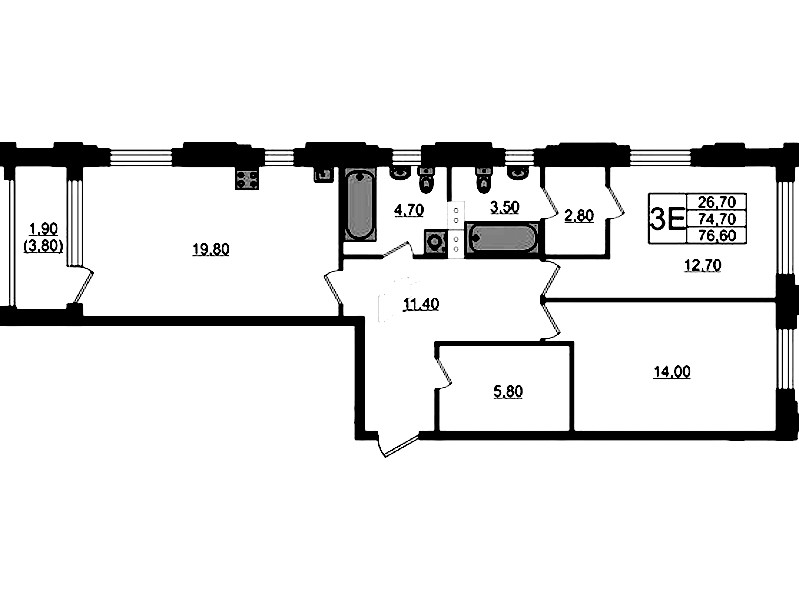 • Площадь76,6 м2