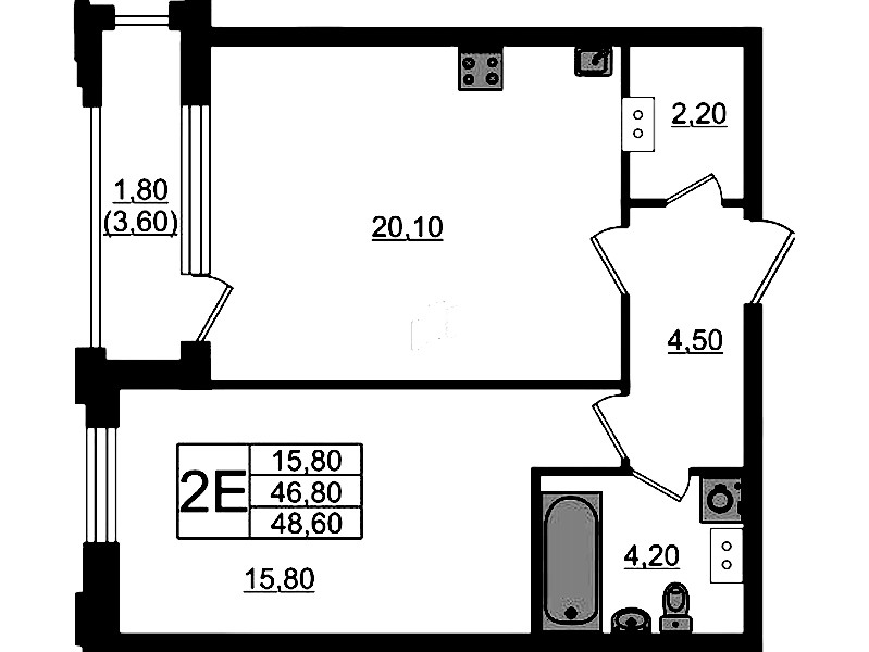 - Площадь48,6 м2
