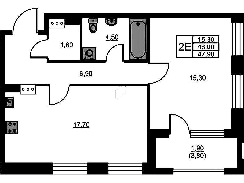 Однокомнатная квартира на 10-ом этаже 47,9 кв.м