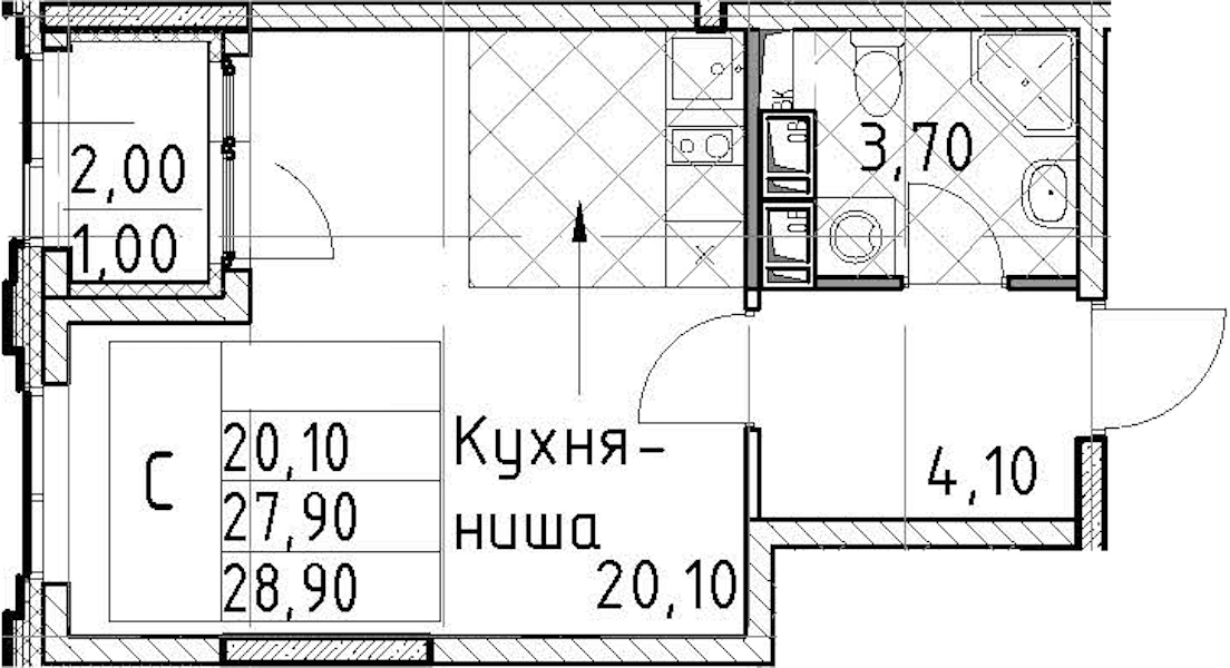- Площадь28,9 м2