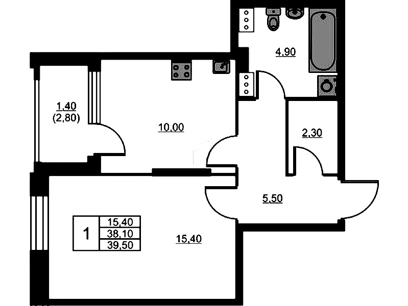 - Площадь39,5 м2