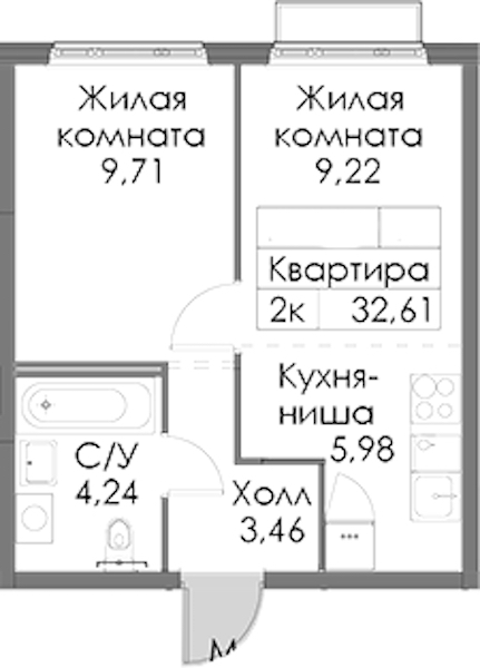 - Площадь32,61 м2