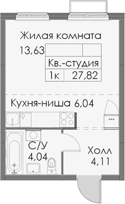 - Площадь27,82 м2