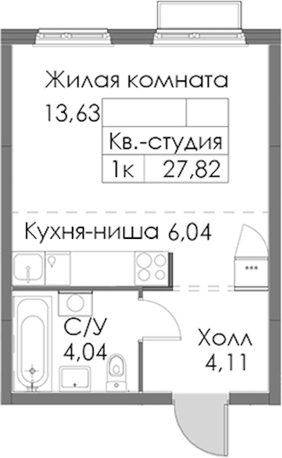 - Площадь27,82 м2