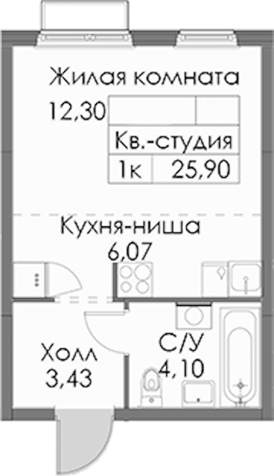 Квартира-студия на 9-ом этаже 25,9 кв.м