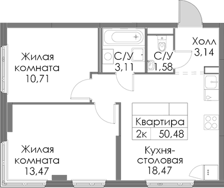 - Площадь50,48 м2