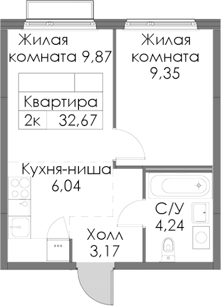 - Площадь32,67 м2