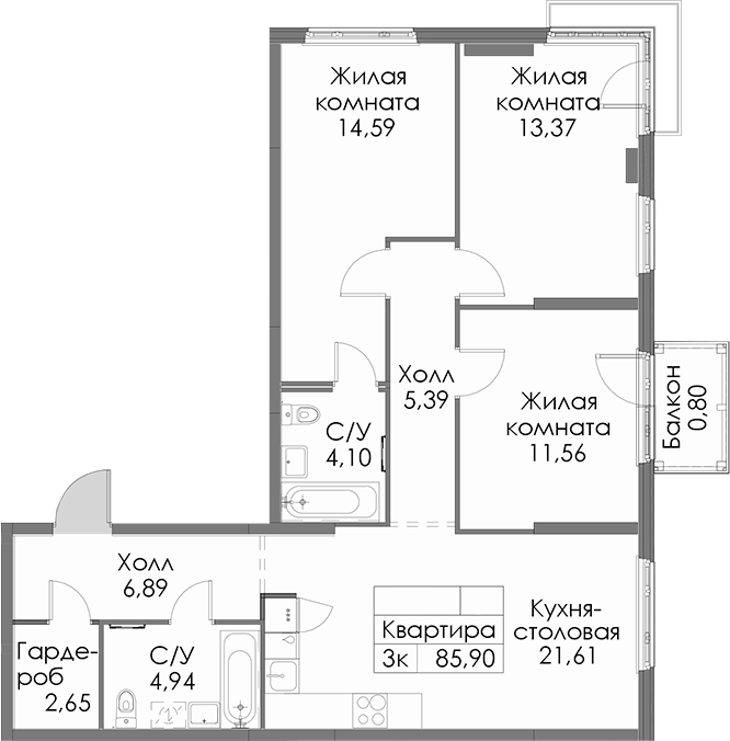 • Площадь85,9 м2