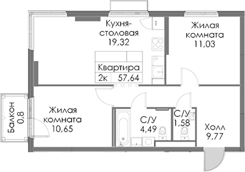• Площадь57,64 м2