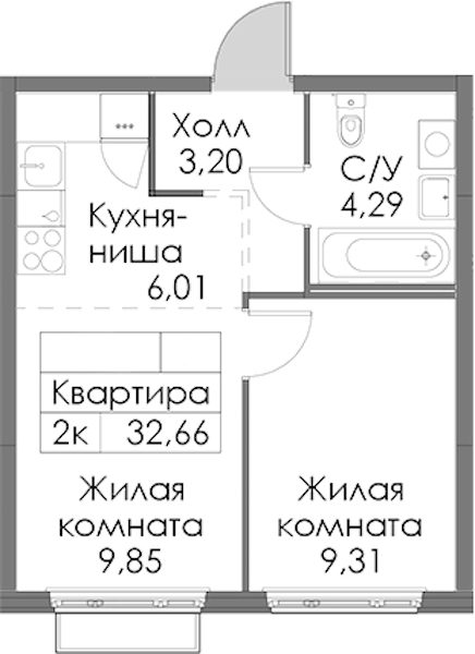 - Площадь32,66 м2