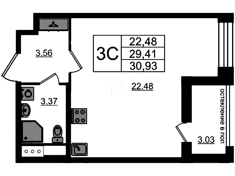 Квартира-студия на 8-ом этаже 29,41 кв.м