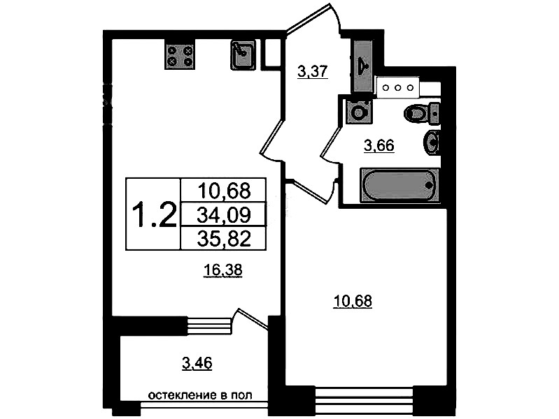 • Площадь34,09 м2