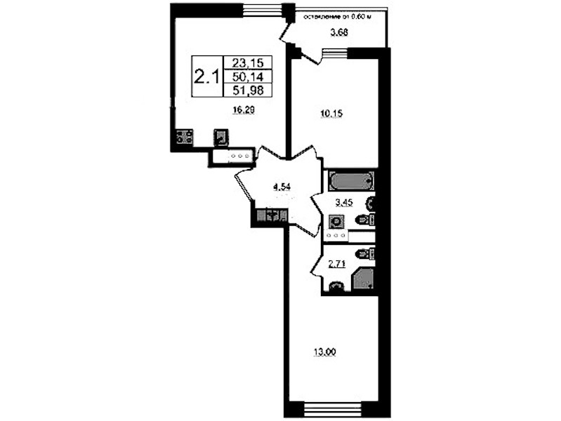 Двухкомнатная квартира на 9-ом этаже 50,14 кв.м