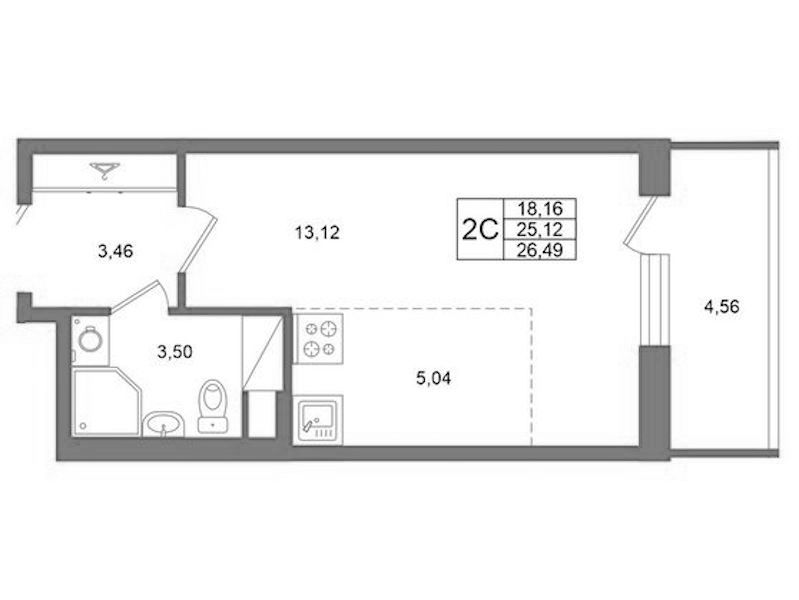 Квартира-студия на 12-ом этаже 25,12 кв.м
