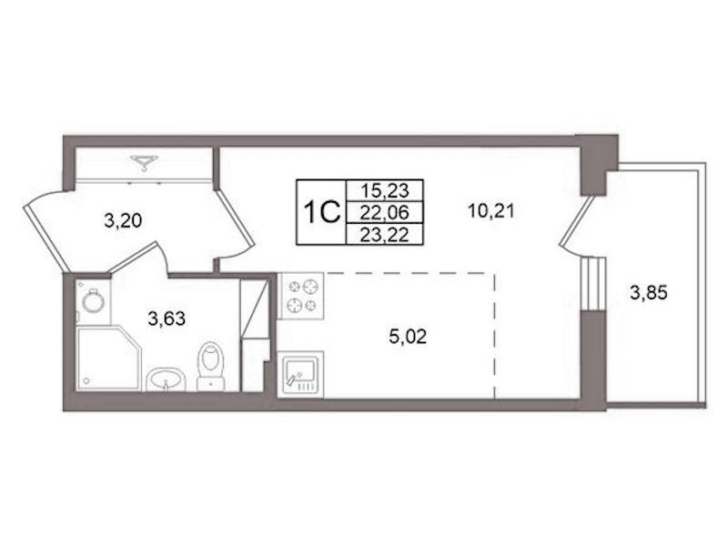 Квартира-студия на 10-ом этаже 22,06 кв.м