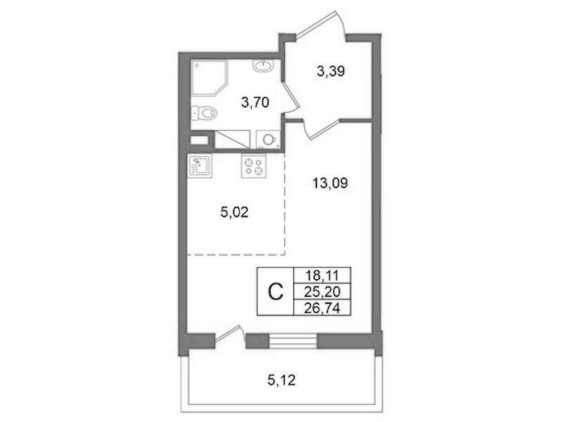 - Площадь25,2 м2