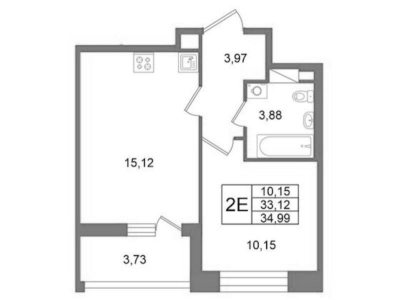 Однокомнатная квартира на 10-ом этаже 33,12 кв.м
