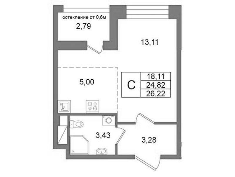 • Площадь24,82 м2
