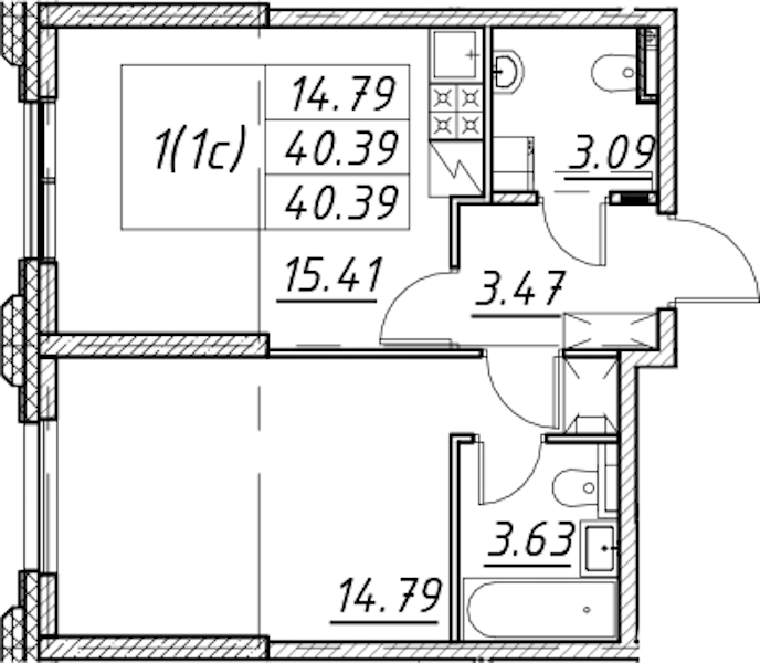- Площадь40,39 м2