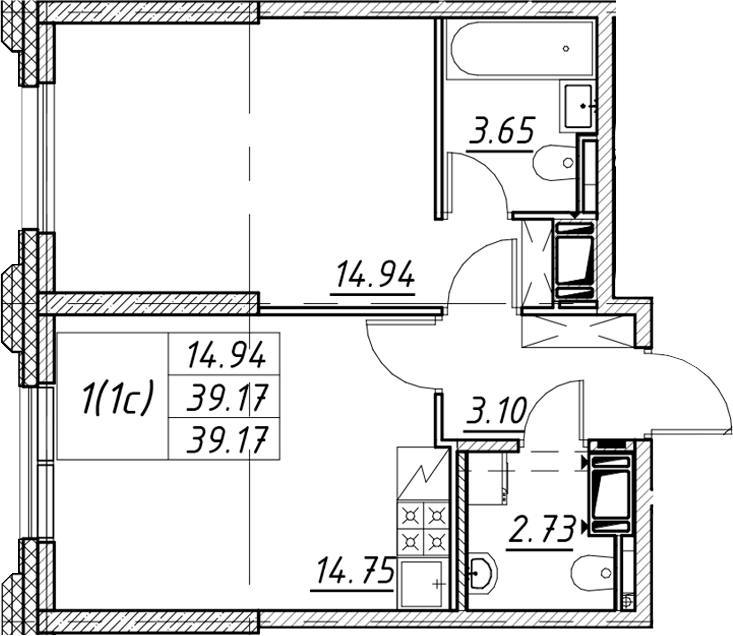 - Площадь39,17 м2