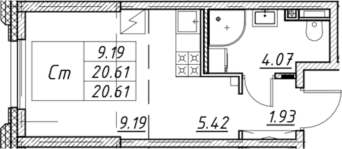 - Площадь20,61 м2