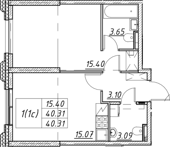• Площадь40,31 м2