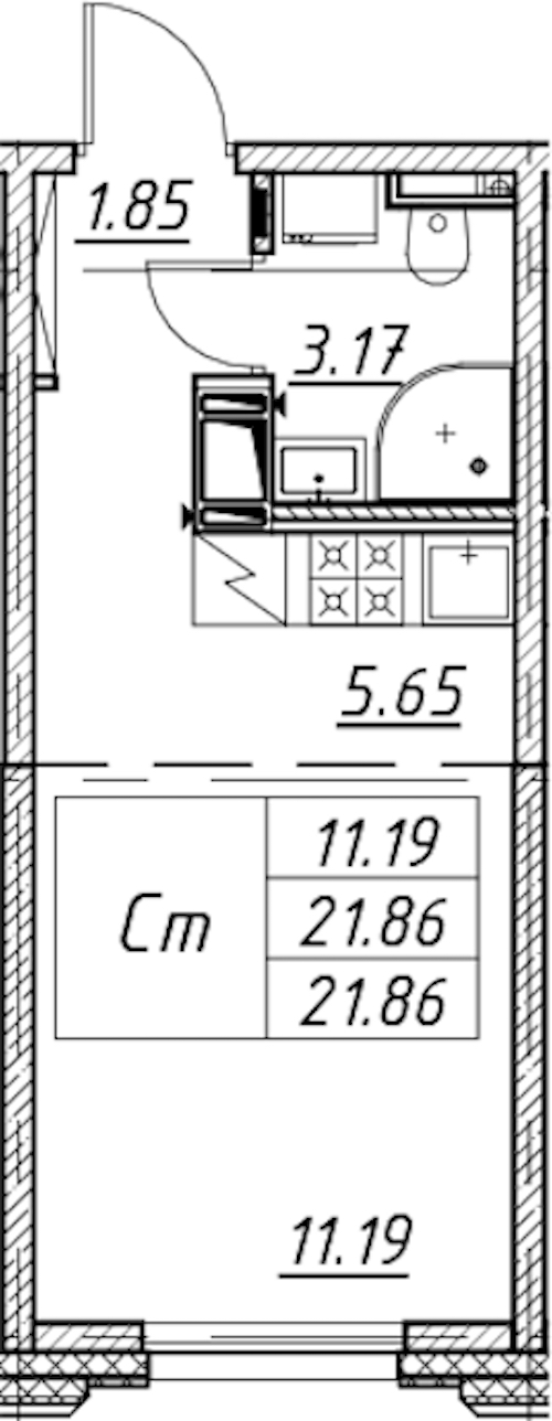 Квартира-студия на 4-ом этаже 21,86 кв.м