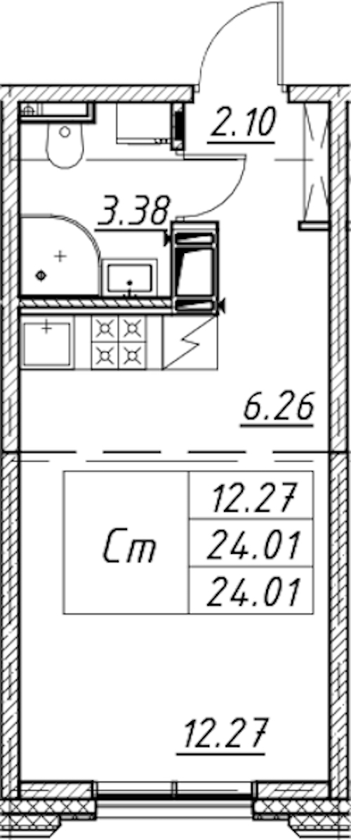 - Площадь24,01 м2