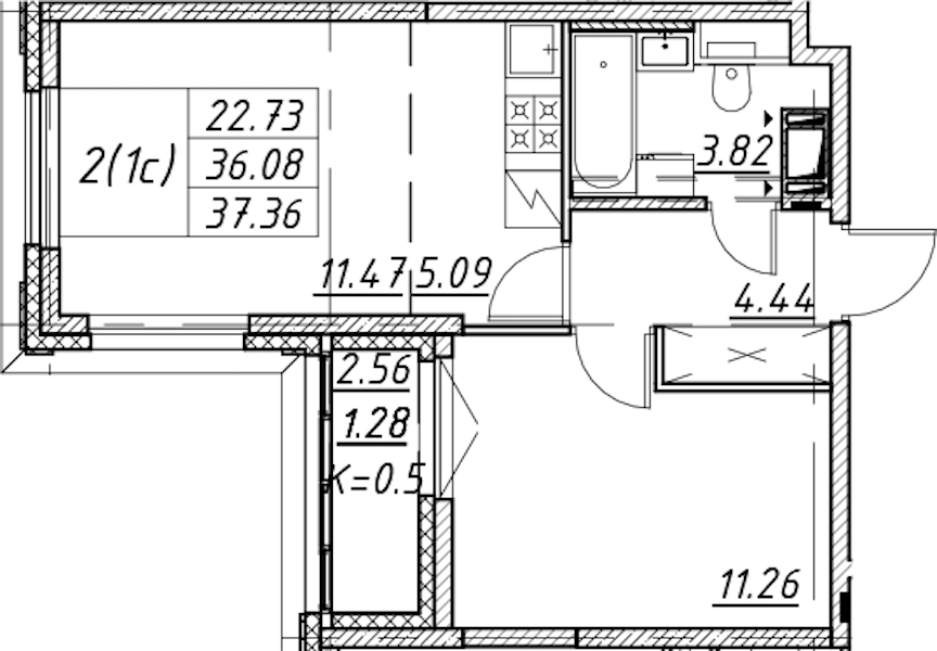 - Площадь37,36 м2
