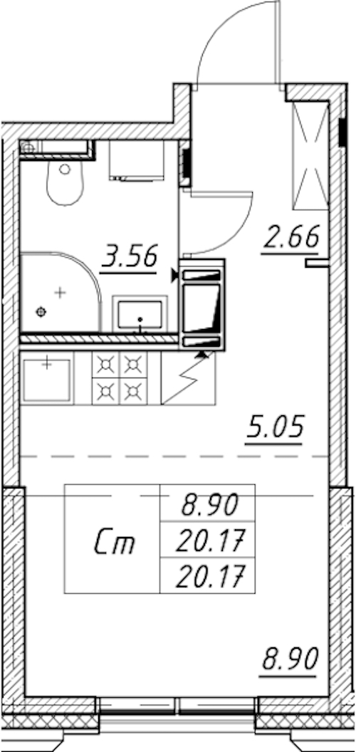 Квартира-студия на 3-ем этаже 20,17 кв.м