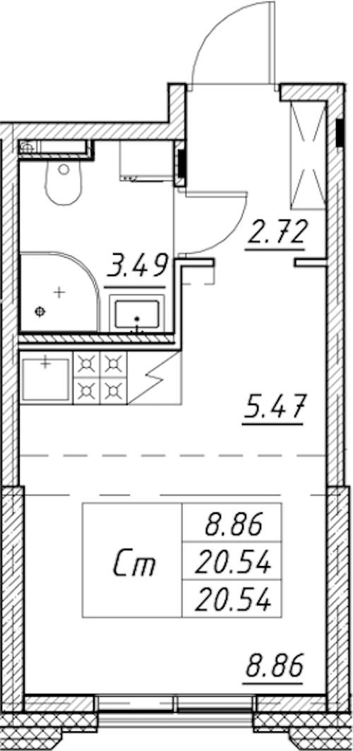 - Площадь20,54 м2