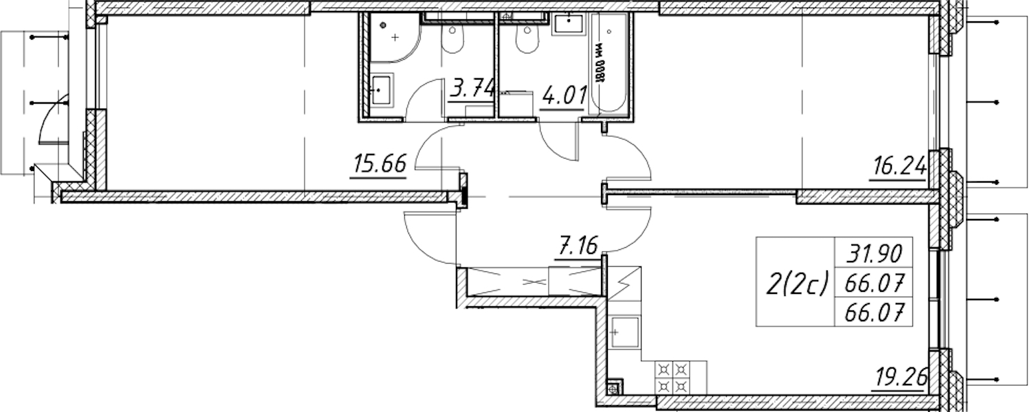 - Площадь66,07 м2