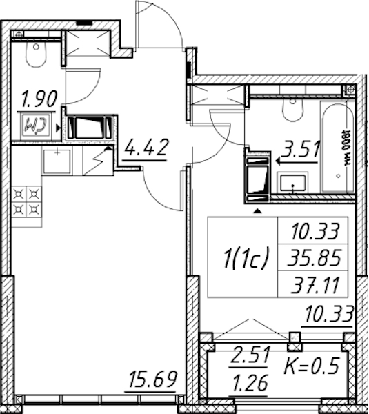 - Площадь37,11 м2