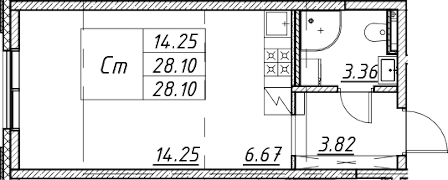 - Площадь28,1 м2