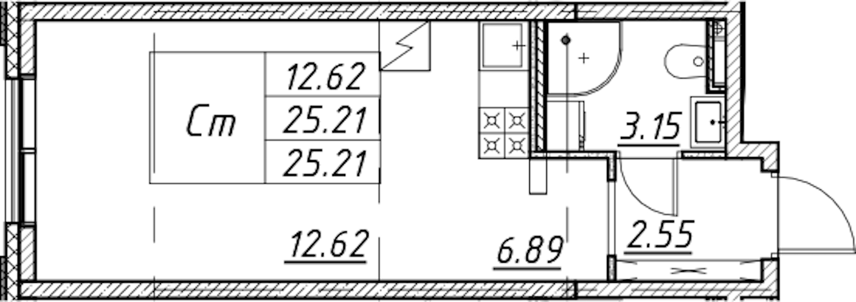 - Площадь25,21 м2
